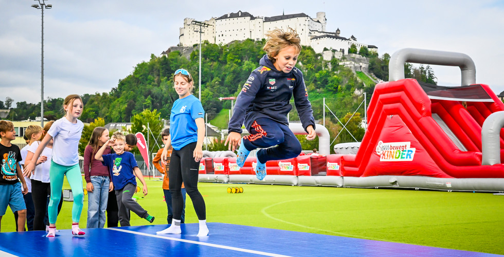Ein besonderes Highlight war der Besuch von Skisprunglegende Andreas Goldberger, der sich viel Zeit nahm, um gemeinsam mit den Kindern die einzelnen Stationen zu erproben. Ob Kletterturm, Airtrack, Gladiator, Tanzen, Radfahren, Fußball oder Geschicklichkeitsübungen – die Begeisterung der jungen Teilnehmerinnen und Teilnehmer war überall spürbar.